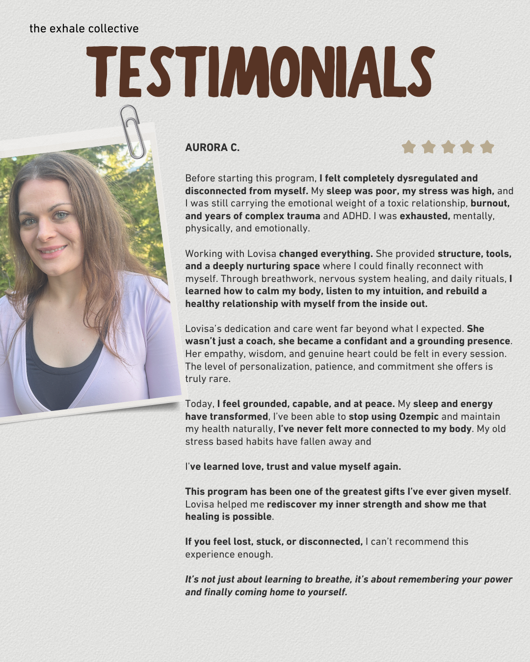 Click on each picture to read the full testimonial